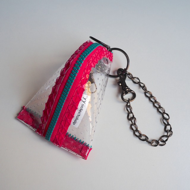 CLEAR MINI CASE1 -yy selectshop- 縦:約10cm 横(1番横幅が広いところ):約7.5cm 厚さ(下の面から1番高さのあるところ):約5cm チェーン(外):約15cm キーチェーン(中):約7.5cm CLEAR MINI CASE1 は、トートバックやリュックなど何にでも取り付けられるミニケース。 ケースの中にはキーチェーンが付いているため、キーケースとしても使用できます。 ※商品の色合いは、撮影環境やご使用のモニターによって実際のものと多少異なる場合がありますので、ご了承ください。