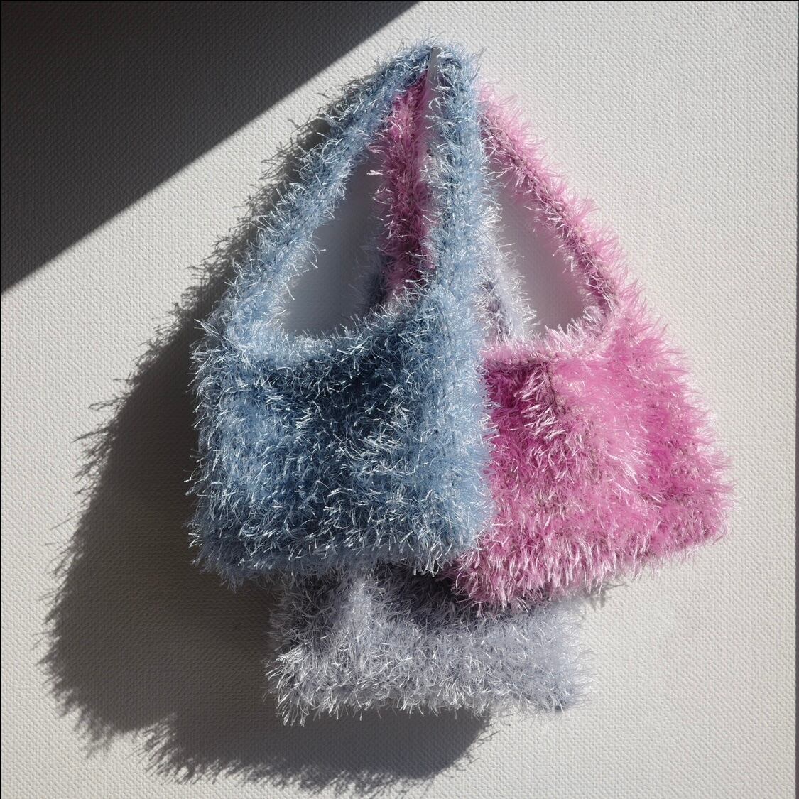 KNITTING MINI FUR BAG - Light Blue
